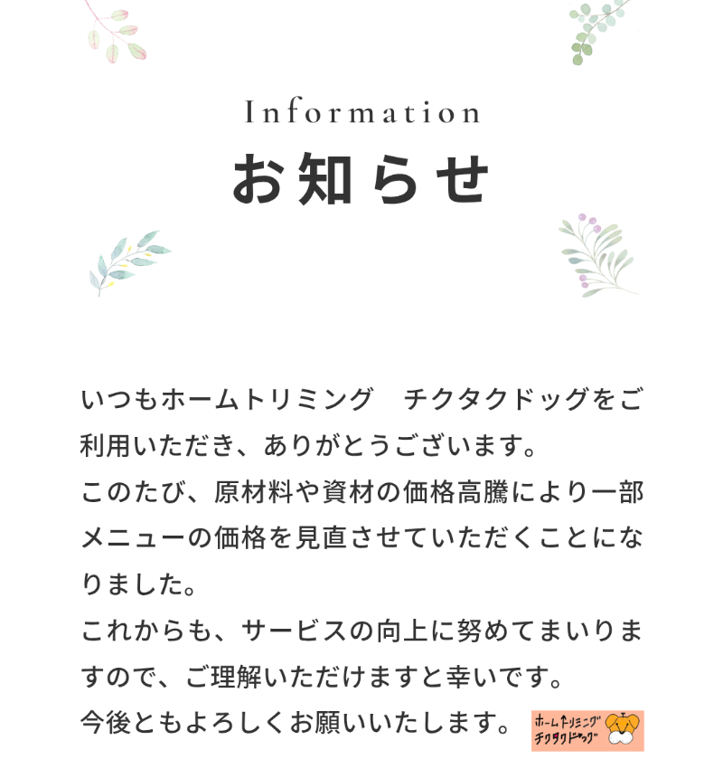 | 事業所の名称 | ホームトリミング チクタクドッグ |
